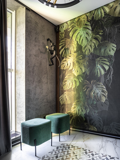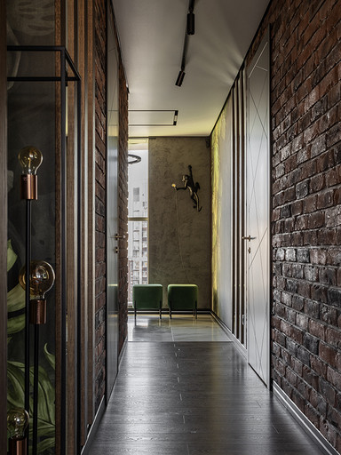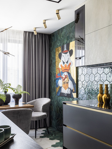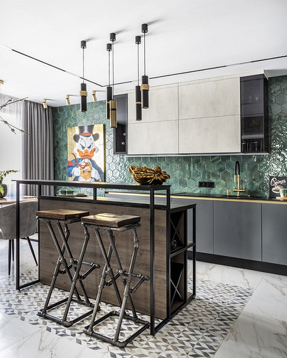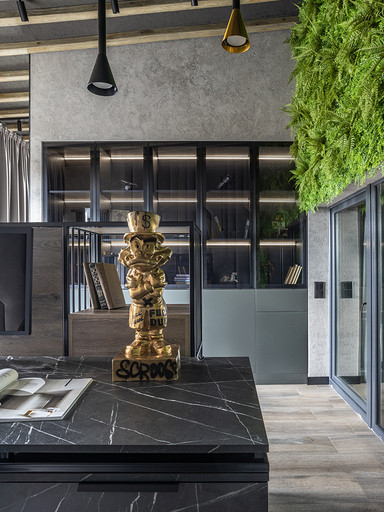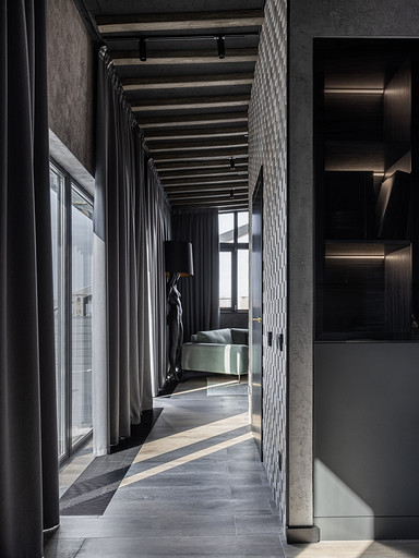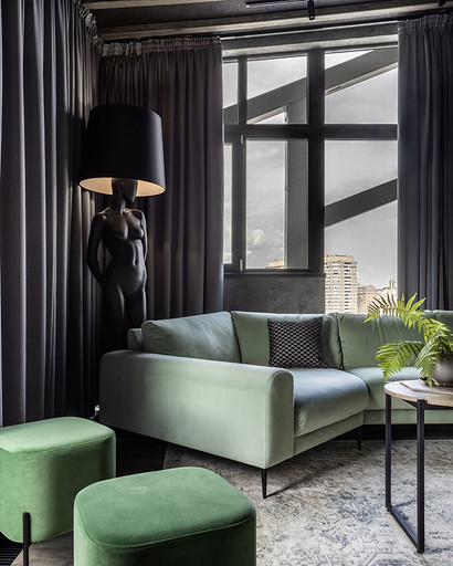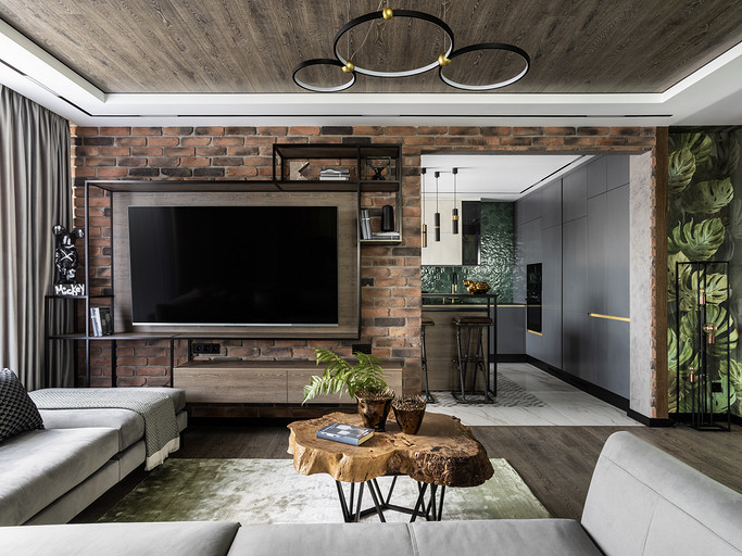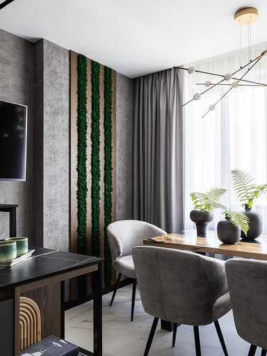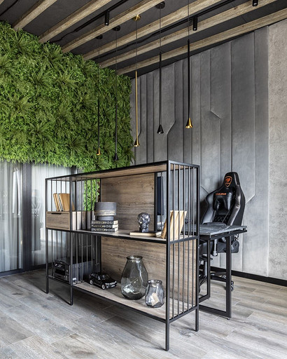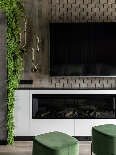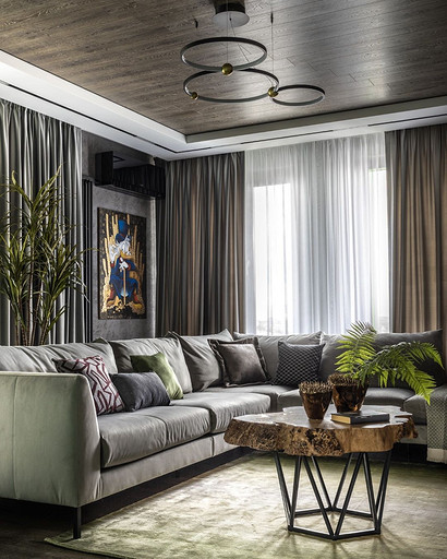 Квартира свободной планировки площадью 173 м2, в современной стилистике, в ЖК GREEN ДОМ г. Уфа. Особенностью данной квартиры являлось наличие большой открытой террасы. В результате грамотного планирования в квартире удалось разместить просторную и очень вместительную кухню, гостиную с большой мягкой зоной, спальню, в которой имеется гардеробная, и ванную комнату, где также есть все необходимое. Часть террасы застеклили, утеплили и там расположились кабинет, кинозал и зона хранения. На открытой террасе в летнее время можно будет пожарить шашлык или позагорать на шезлонгах.