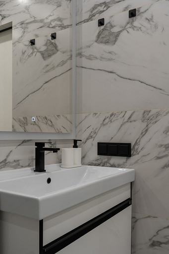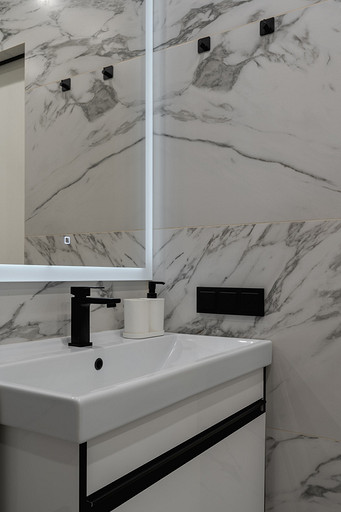 - Сантехника: унитаз и душевое ограждение BelBagno, душевой комплект Berges, инсталляция Stworki, кухонная мойка Tolero, смеситель на кухне Olive’s