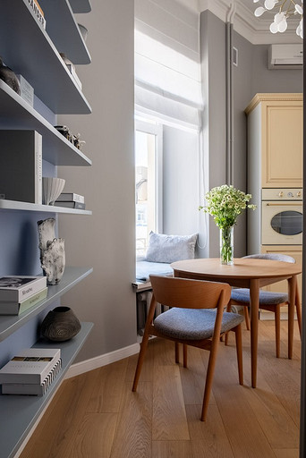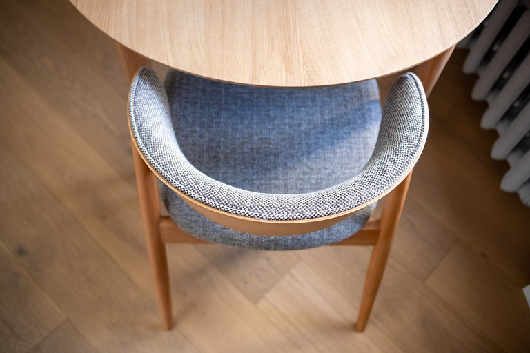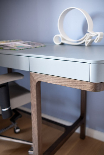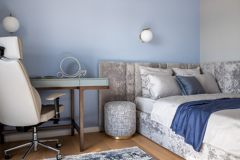 - Мебель: стол на кухне SK Design, стулья на кухне DeepHouse, рабочий стол Tohma, рабочее кресло ToSit, мягкая мебель и шкаф — столярная компания «Интерьерро» (на заказ), столик у дивана Swog