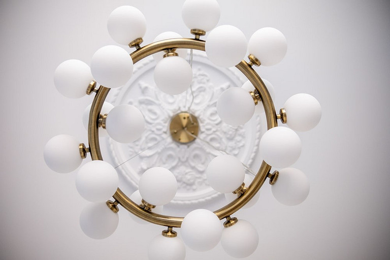 - Декор: Woonstores, над диваном печать с работы Алексея Ланцева
