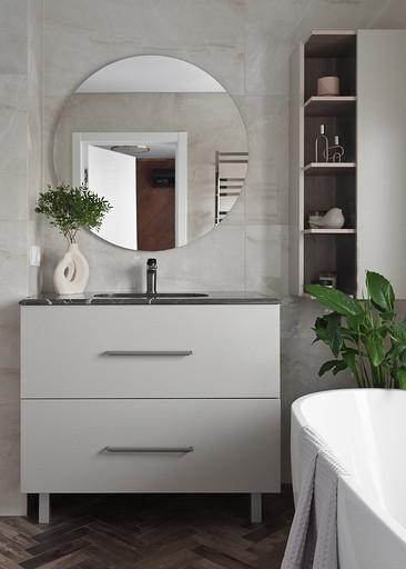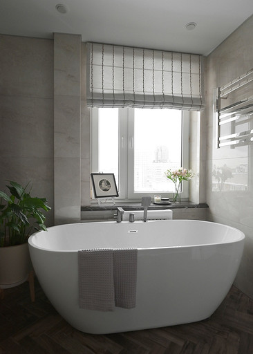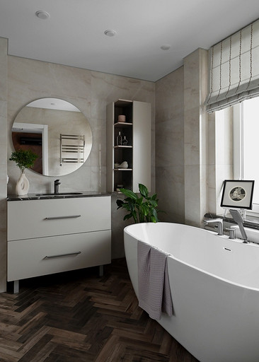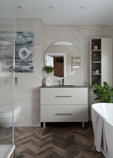 - Стены и пол: плитка Mariner, ABK Ceramiche, краска Avalon, инженерная доска «Пол вам в дом»