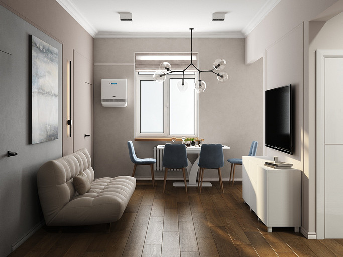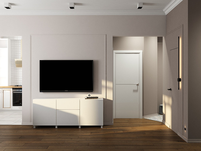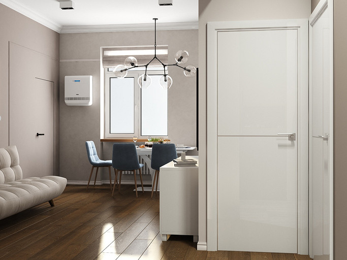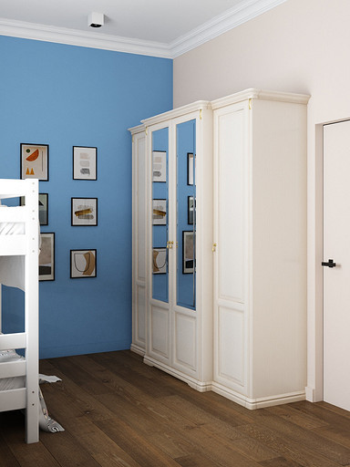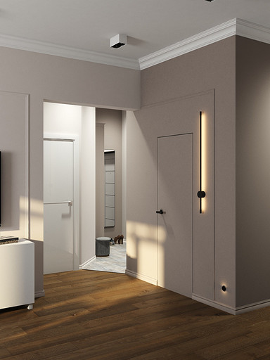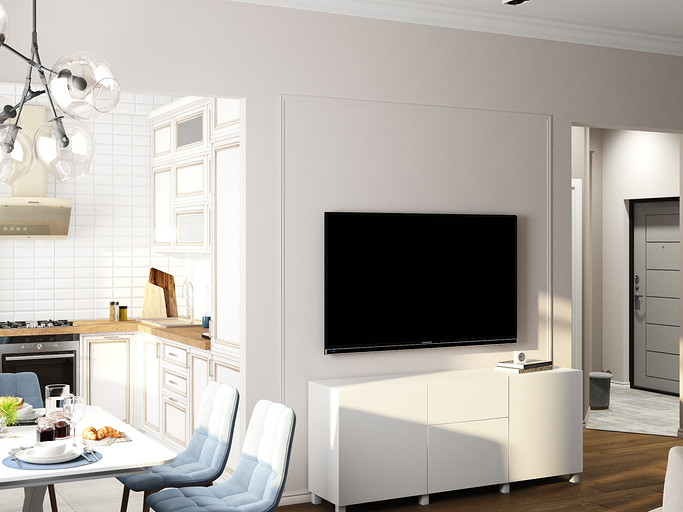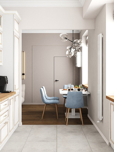 Квартира в старом фонде для семьи с тремя детьми. Стояла задача оптимизировать пространство и выделить личное пространство для родителей. Кухню гостиную увеличили за счет большого коридора, в прихожей сделали гардеробную комнату и избавились от длинного узкого коридора во входной зоне. Большую комнату разделили на две небольших, у каждого в семье получился свой уголок. Дизайн квартиры выбран в светлых спокойных тонах с классическими элементами.