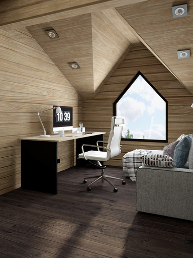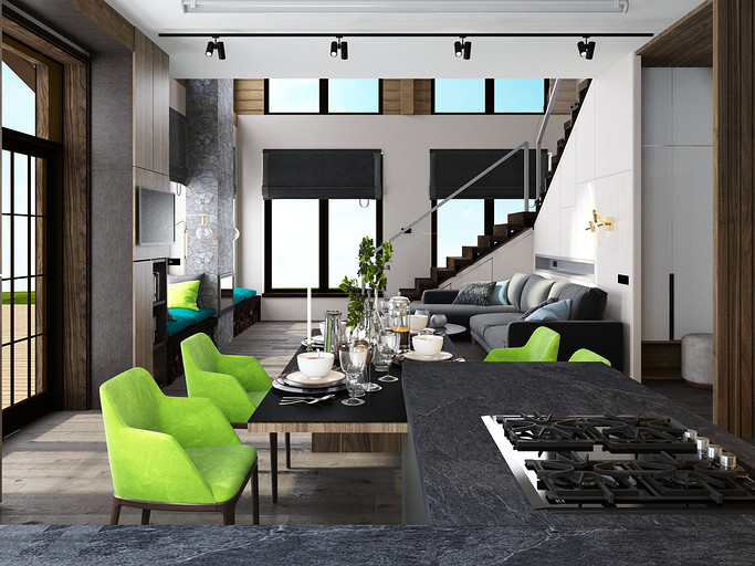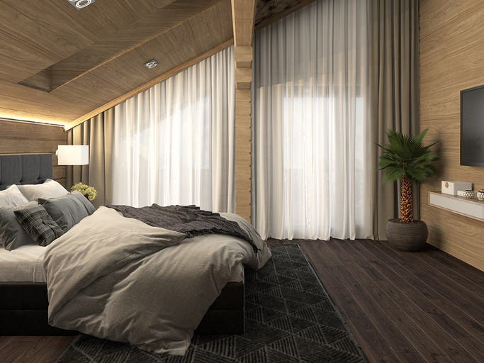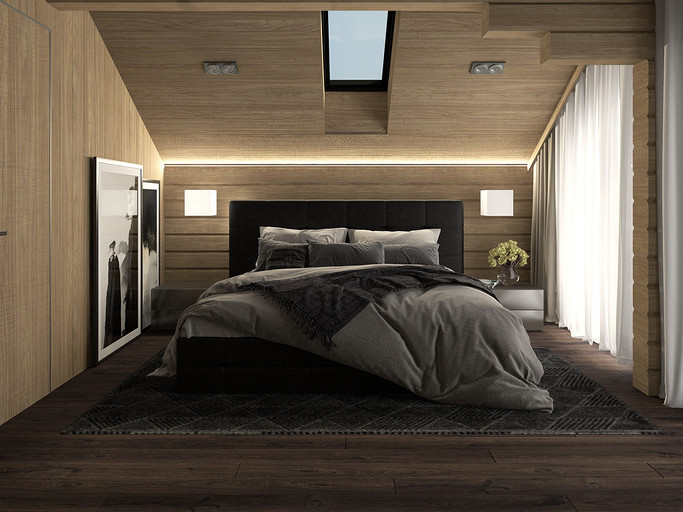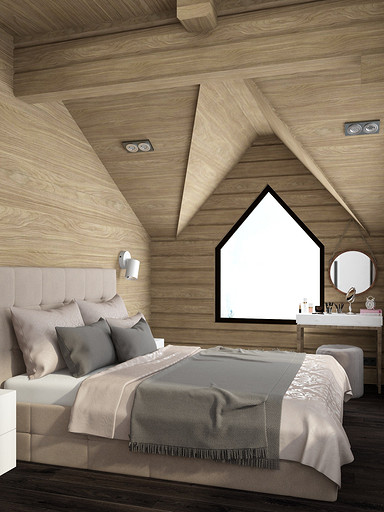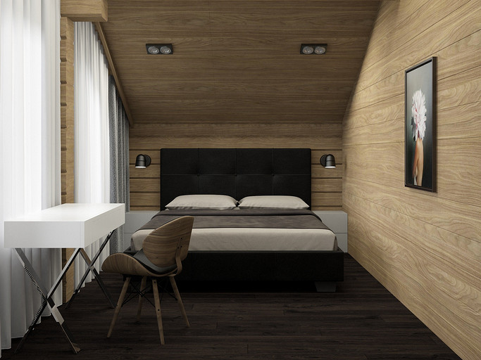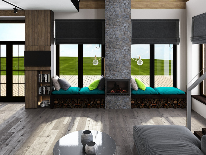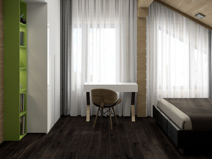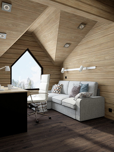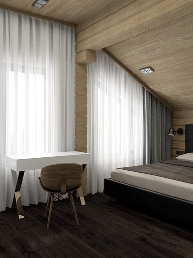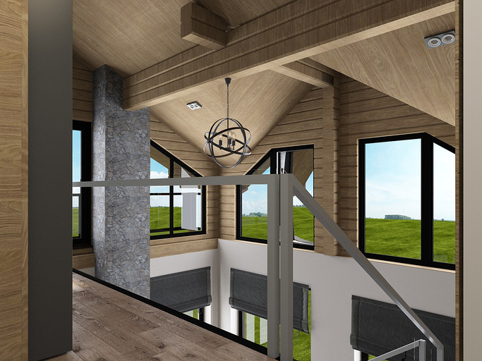 Дом в современном стиле с элементами шале. Площадь дома довольно большая, исходные данные хорошие и планировку мы решили не менять. Внутренняя отделка преимущественно дерево, за счет этого создается ощущение уюта и спокойствия.