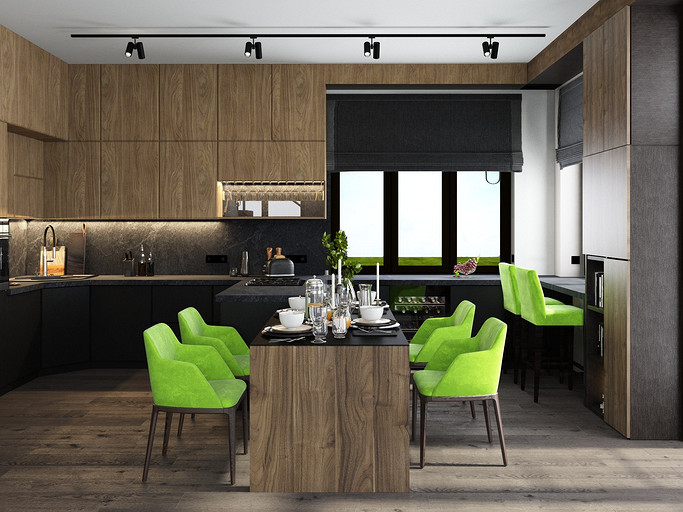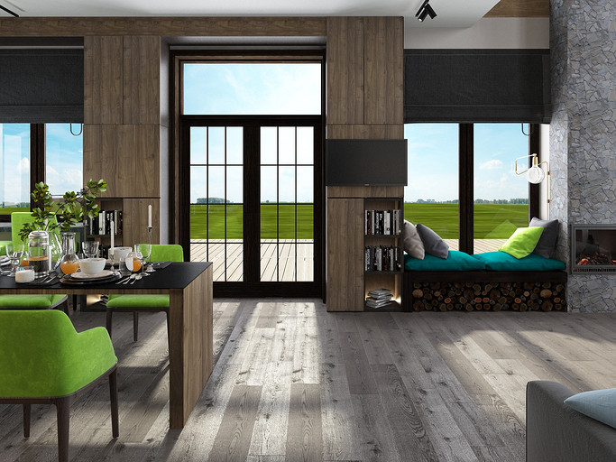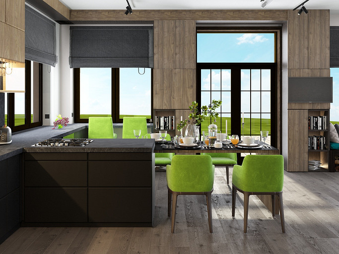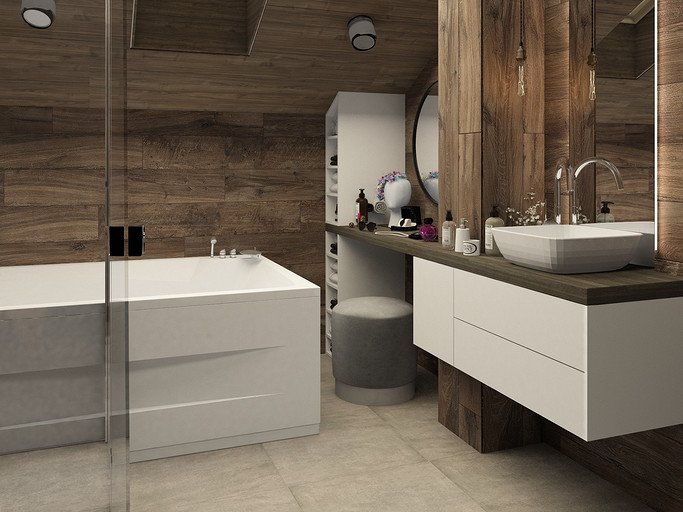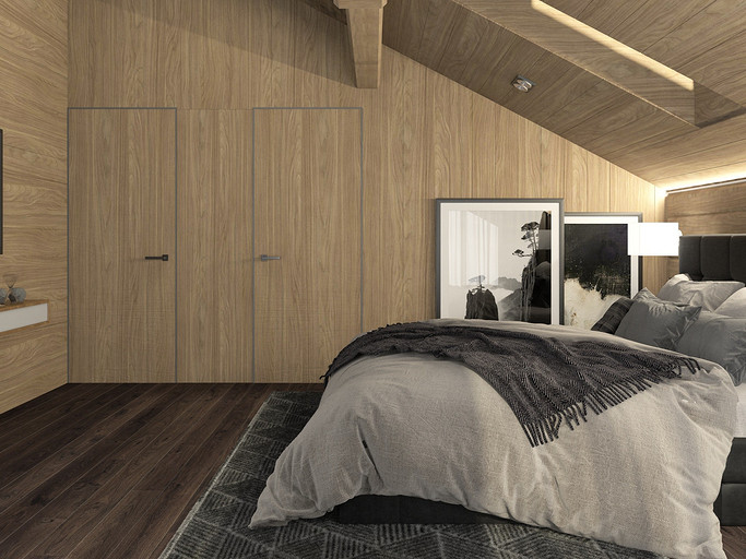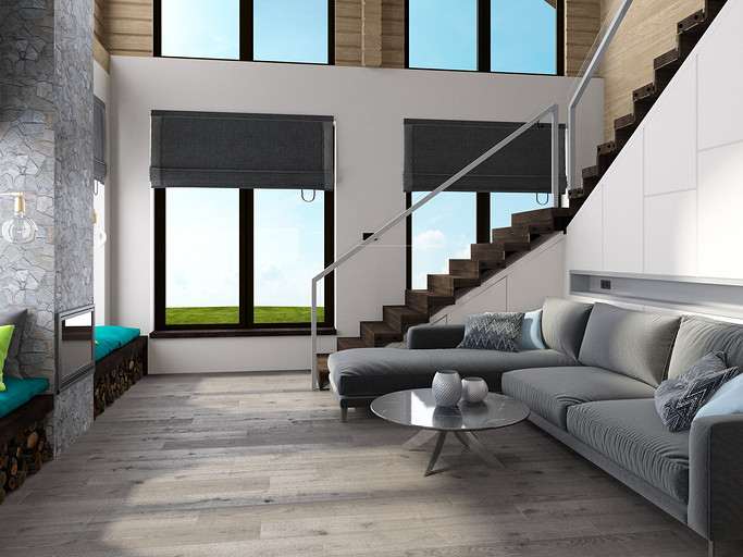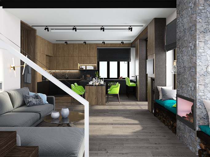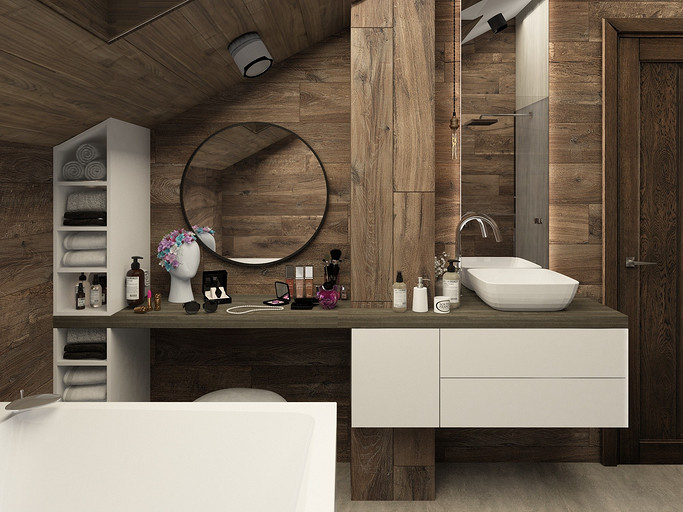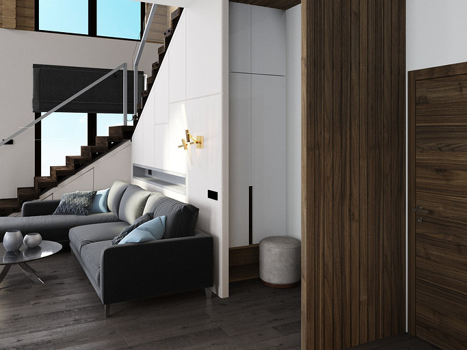 Дом в современном стиле с элементами шале. Площадь дома довольно большая, исходные данные хорошие и планировку мы решили не менять. Внутренняя отделка преимущественно дерево, за счет этого создается ощущение уюта и спокойствия.