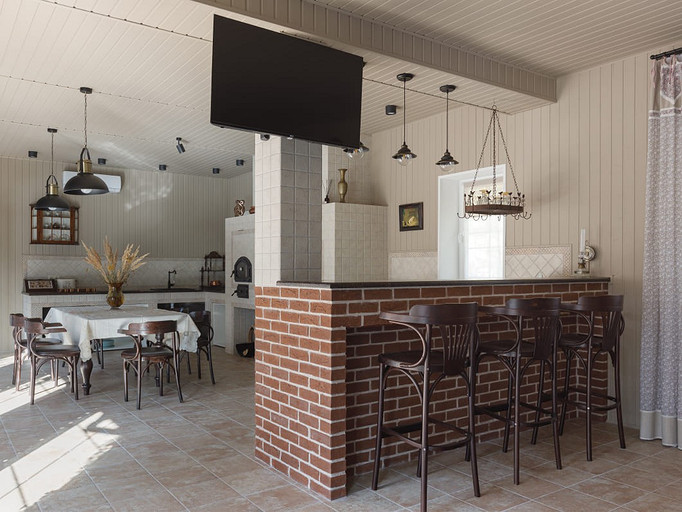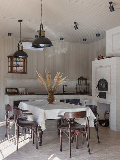 Дом продуман так, чтобы здесь было комфортно хозяевам и другим членам большой семьи: их пожилым родителям, детям и внукам. Интерьер создан на стыке разных стилей, и он получился одновременно изысканным и «теплым». Читать далее...