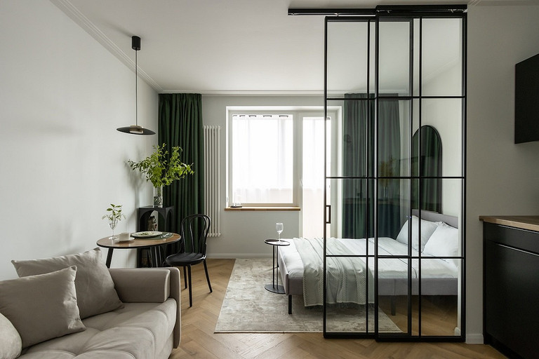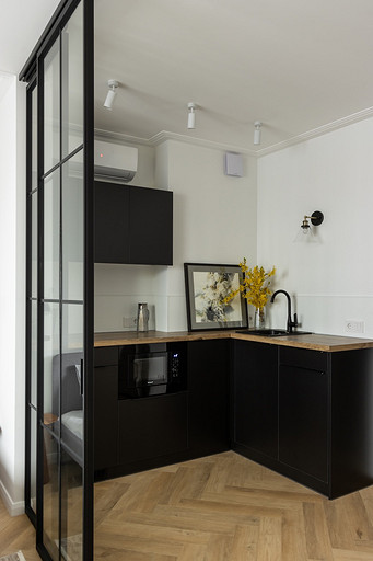 У этой квартиры была не очень удобная планировка — проходная кухня и маленькая комнатка. Дизайнер решила обыграть ее иначе, и получился уютный, светлый и комфортный интерьер. Читать далее...