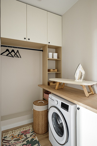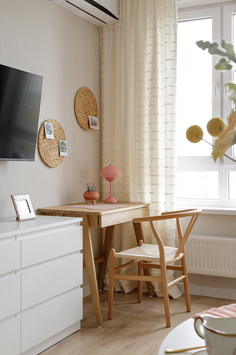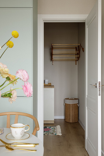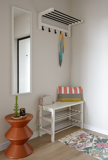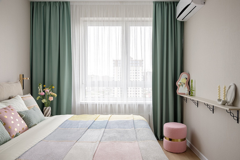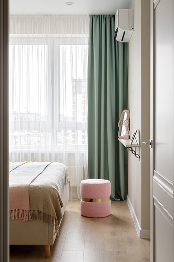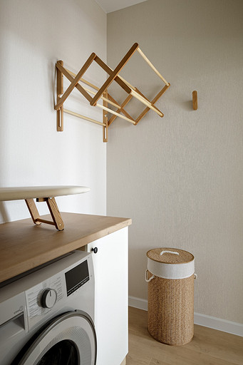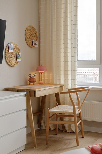 - Мебель: кухня и мебель в постирочной сделаны на заказ, кровать Hoff, комод ИКЕА, компьютерный стол Pilof, диван Dee One, табурет Goncuil