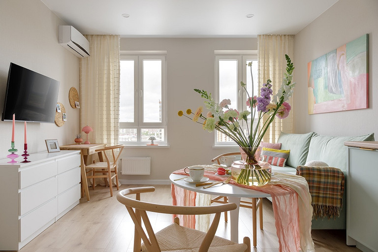 Исходный ремонт от застройщика дизайнер преобразила до неузнаваемости с помощью необычной мебели и декора. Читать далее...