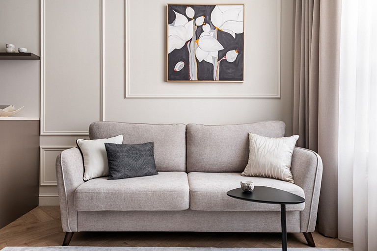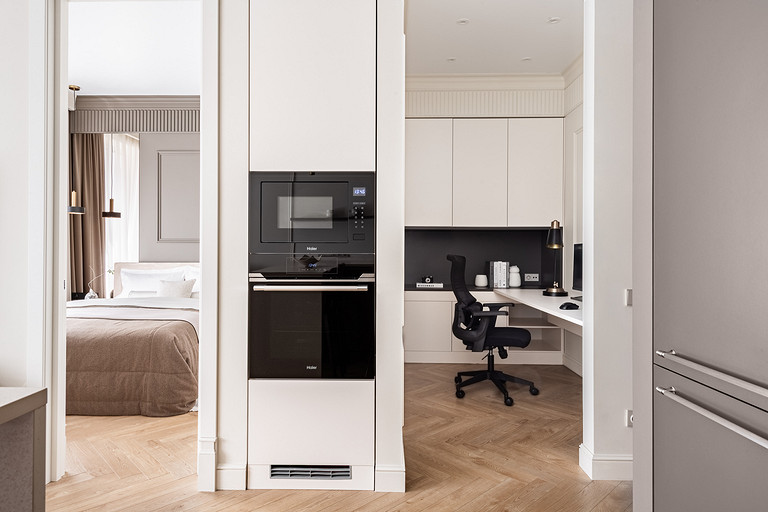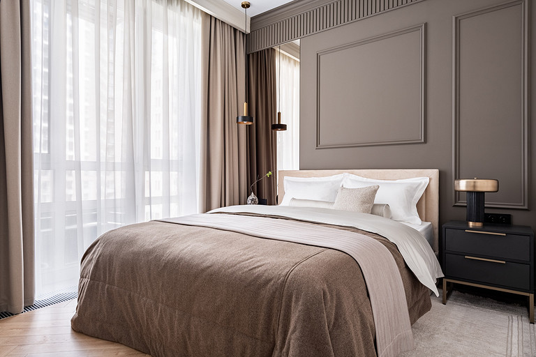 - Мебель: корпусная Tim Kitchens, диван The Furny, кровать Askona, журнальный столик Designboom