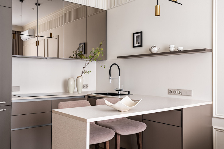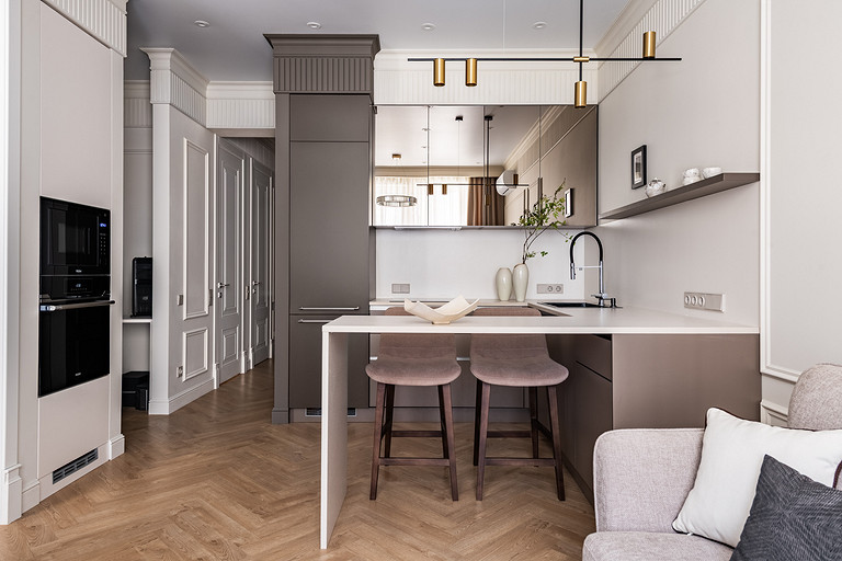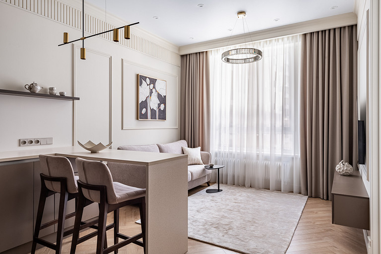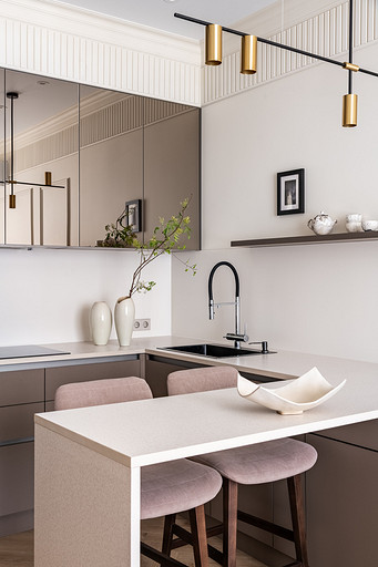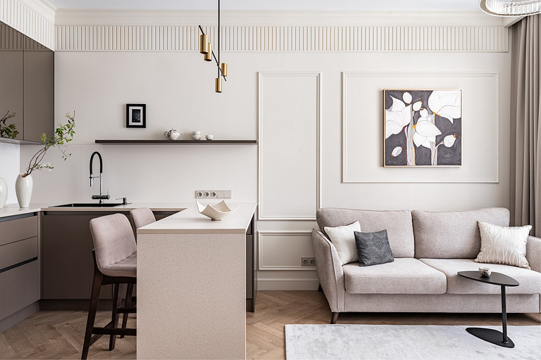 - Декор: Izzi Decor, Dantone, картина в гостиной — Анна Жижайкина, фоторабота на кухне — Станислав Демичев, картины в прихожей — Татьяна Кирикова