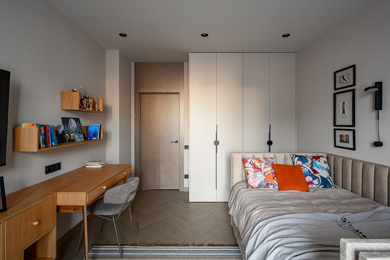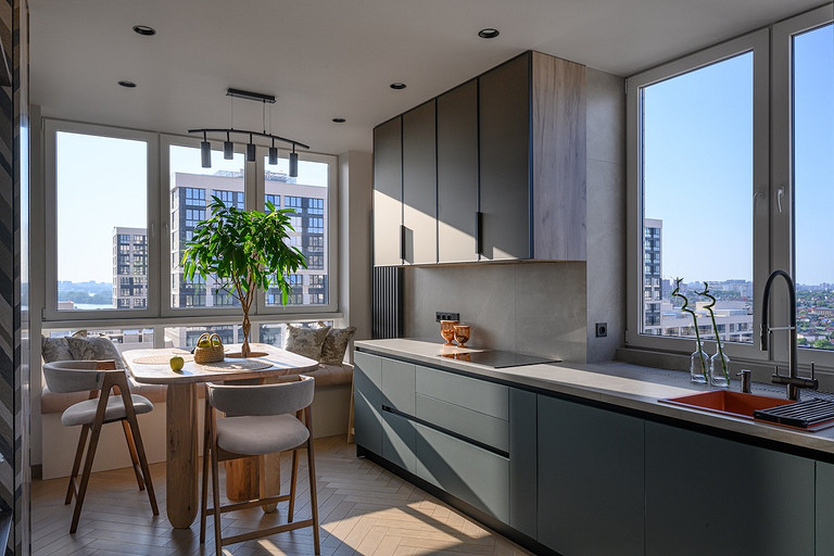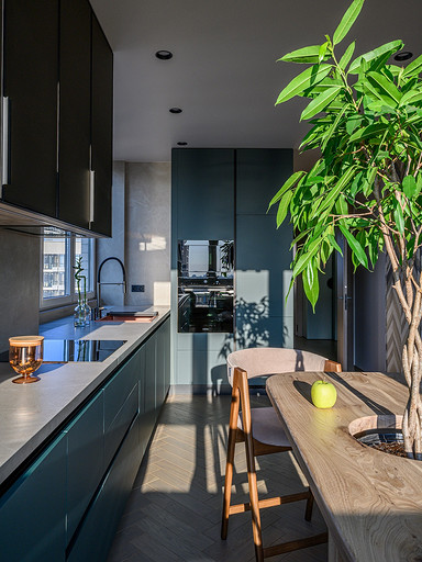 - Мебель: кухня и корпусная мебель сделаны на заказ, стулья на кухне DeepHouse, стол и комод в спальне Dantone Home