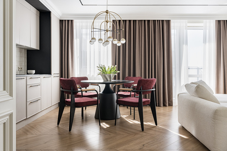 Дизайнер воплотила пожелания молодой пары, которая на момент въезда в квартиру уже стала семьей. Читать далее...