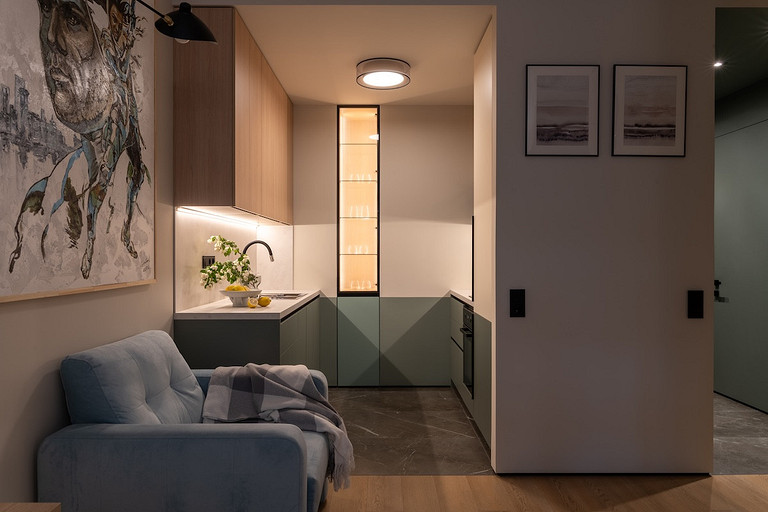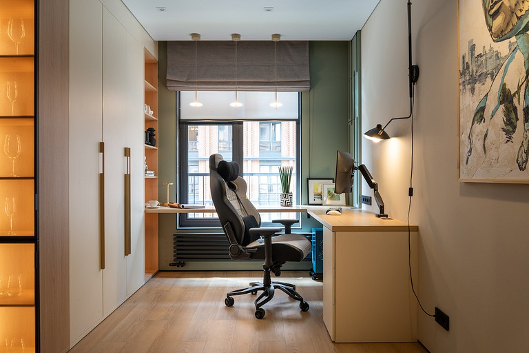 На маленькой площади уместили кухню-гостиную, спальню, два рабочих места и постирочную. Читать далее...