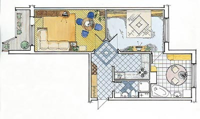 Пять вариантов перепланировки типовой двухкомнатной квартиры общей площадью 57,8 м2 в доме серии