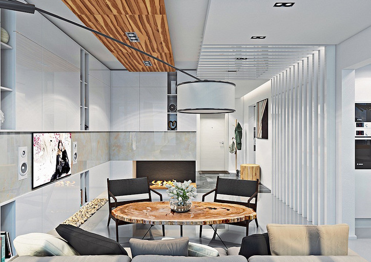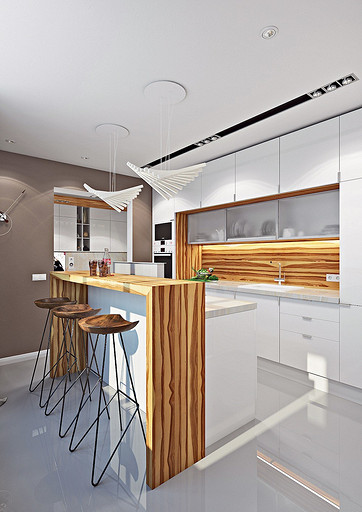 Квартира, рассчитанная на проживание одного-двух человек, выполнена в духе минимализма с элементами функционализма. В интерьерах используются наливные полы и ярко выраженная текстура дерева. А белый цвет служит фоном, уравновешивающим яркие детали. Читать далее...