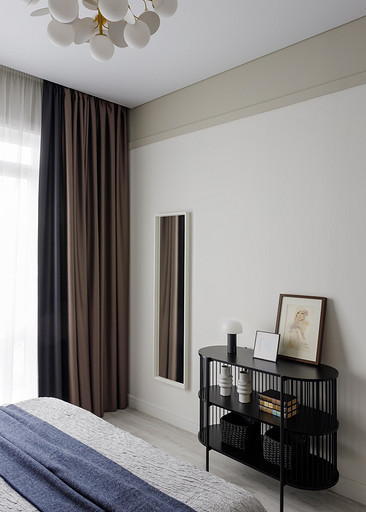 - Мебель: диван Homecollect, журнальный столик в гостиной, тумбочки и консоль в спальне divan.ru, обеденный стол Stool Group, кухонный гарнитур и шкаф в спальне «ЗОВ», кровать Perrino