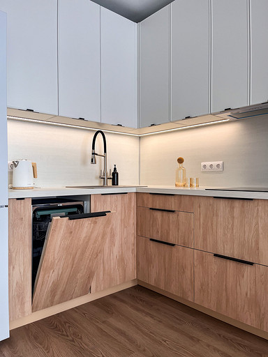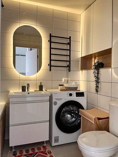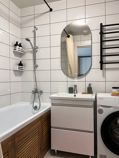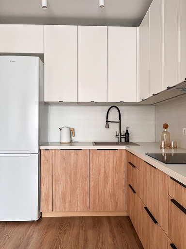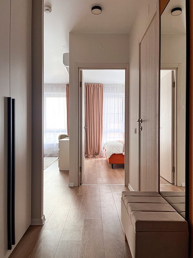 Эту квартиру купили «на будущее» — сейчас владельцы будут ее сдавать, а через пару лет переедут жить. В квартире уже была отделка от застройщика, которую дорабатывали для комфортного проживания. Необходимо было предусмотреть большое количество мест для хранения вещей.