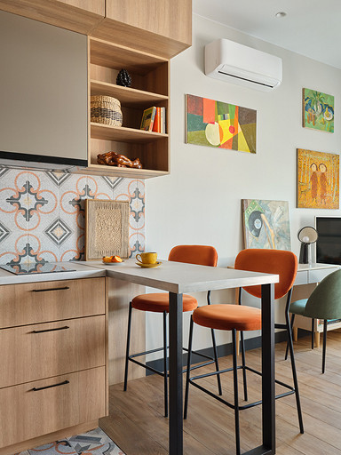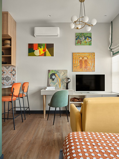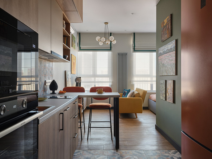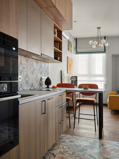 Эта квартира находится на 24-м этаже — из окон открывается вид на современную архитектуру района. С одной стороны, есть ощущение полета над городом, с другой — монотонности городской застройки. Автор проекта предложила добавить в интерьер яркие краски южной природы, и пространство квартиры стало живым, динамичным, творческим. Читать далее...