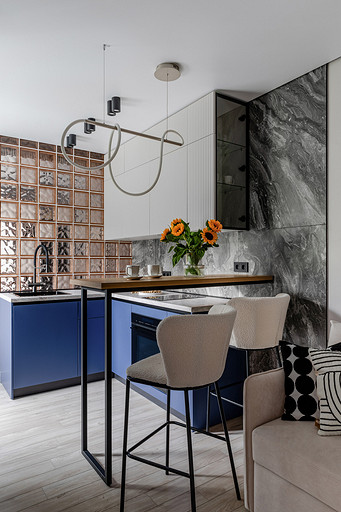 Квартира у моря рассматривалась как для личного проживания, так и для сдачи в аренду. Поэтому было важно эффективно использовать каждый квадратный метр ее небольшой площади. В интерьере сохранена морская тематика, которая проявляется в цветовых сочетаниях синего и оранжевого, как метафора к скользящим по волнам алым парусам. Читать далее...