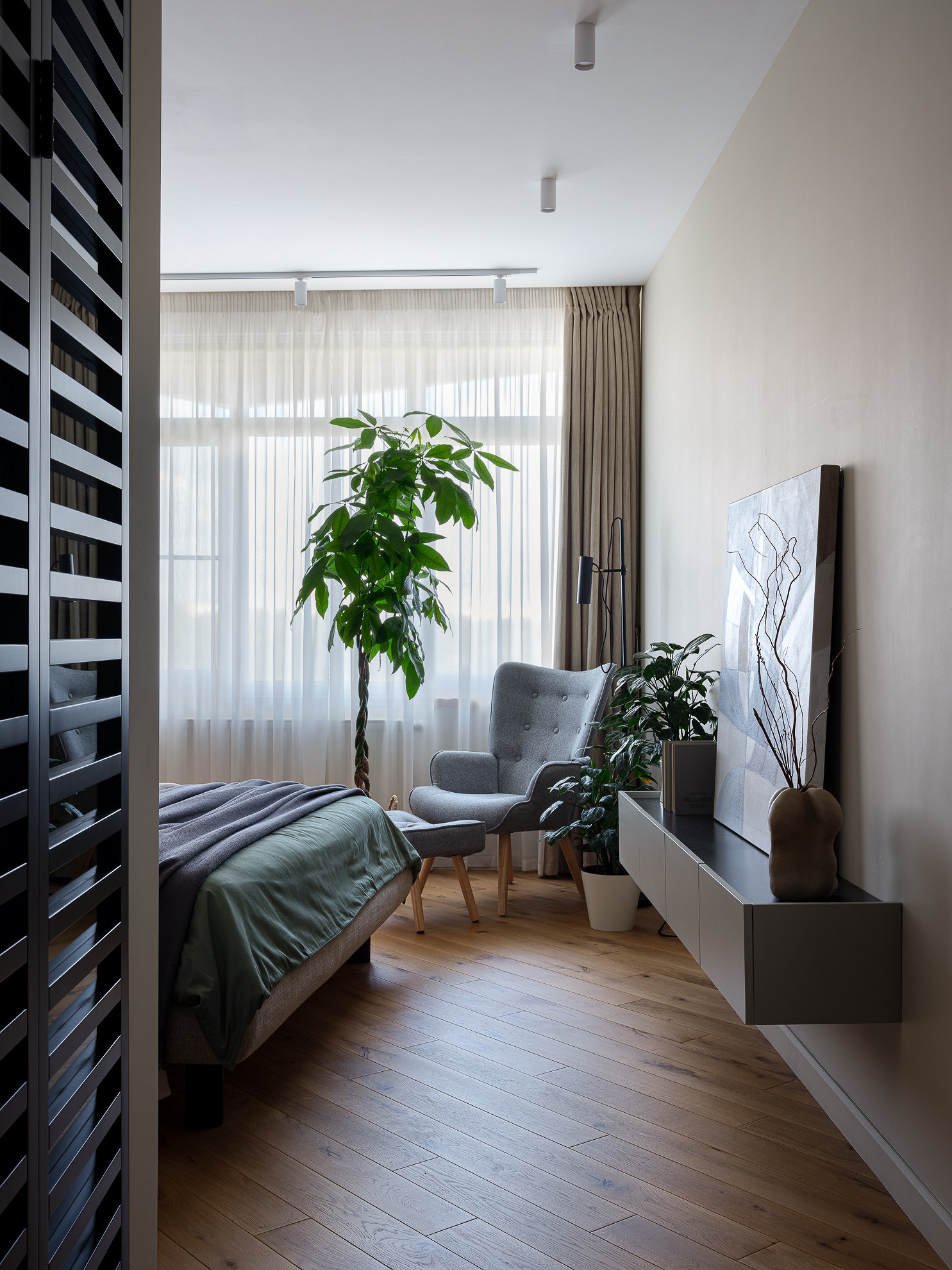 Дизайнер создала уютный, практичный и функциональный интерьер, где молодая пара может работать, отдыхать и планировать будущее увеличение семьи. Читать далее...