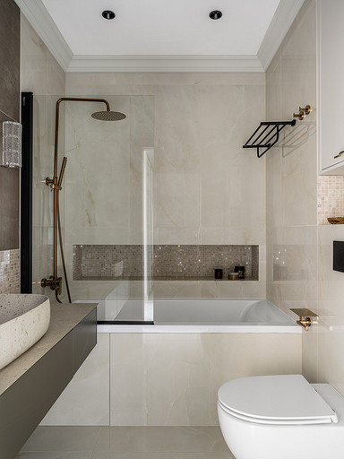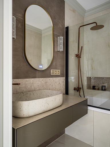 - Пол: инженерная доска Coswick, керамогранит Laparet, Atlas Concorde, Kerama Marazzi