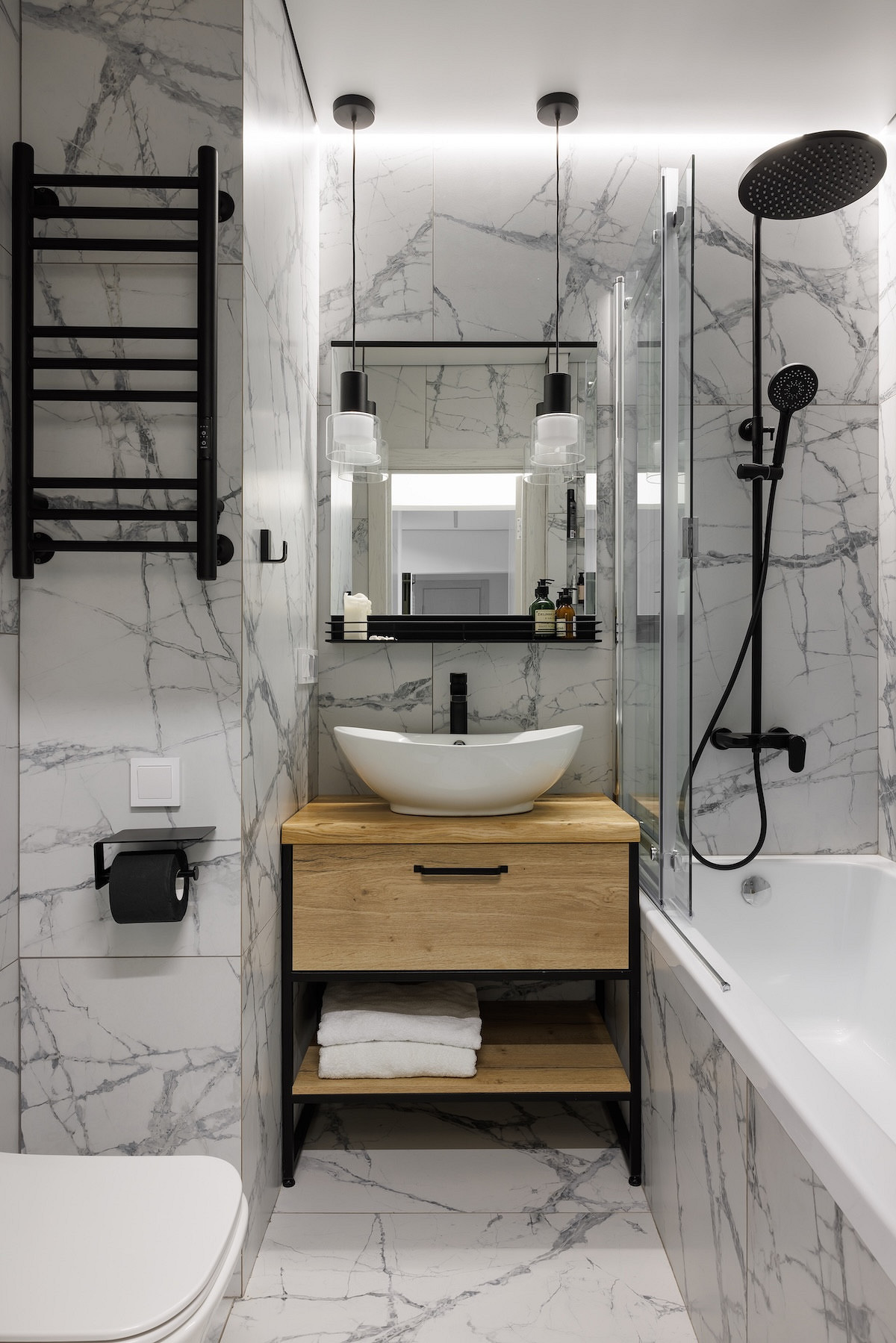 - Пол: паркетная доска, плитка Kerama Marazzi
