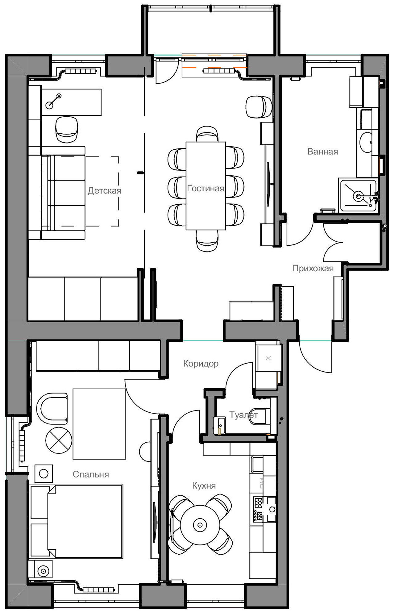 | Гостиная | 17,5 м2 | 17,5 м2 |