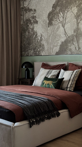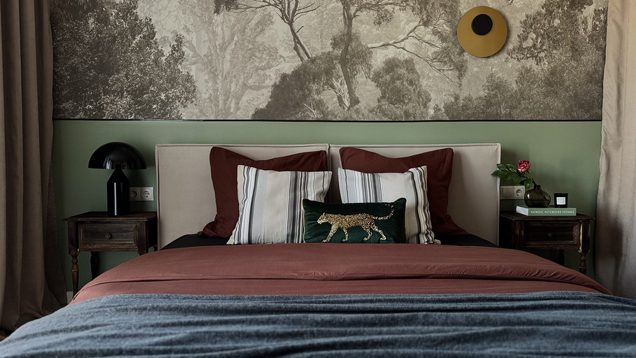 - Стены: краска интерьерная матовая Hugge, обои виниловые Ozon