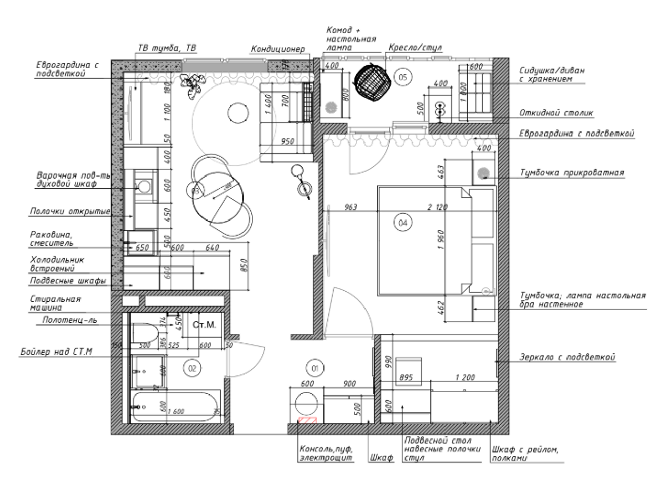 Инвест проект однокомнатной квартиры с white box, под долгосрочную аренду.