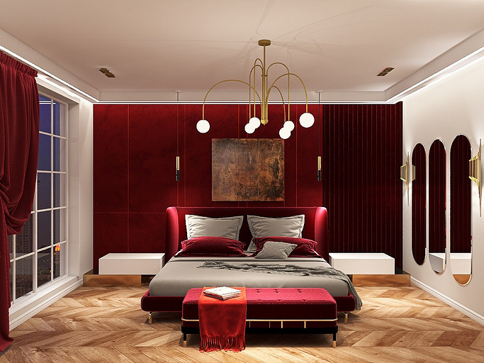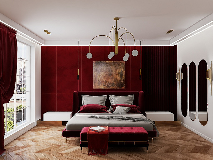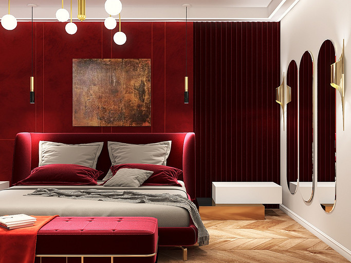 Проект «Golden Frame», 24 кв.м. Спальня с амбициями люкса. Каждый элемент работает на эффект и возврат инвестиций. Пространство превращено в стильный и функциональный интерьер с характером. Основные акценты — бордовый бархат, золотые детали и тёплый свет — создают атмосферу роскоши и премиального уровня. Каждый сантиметр продуман: хранение, зоны для отдыха и работы сочетаются с визуальной лёгкостью. 24 квадрата превратились в пространство статуса, вкуса и уверенности