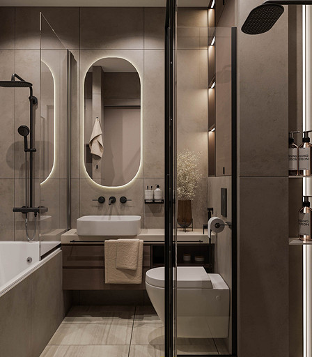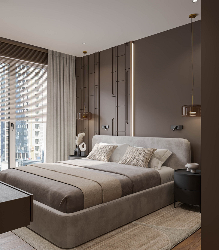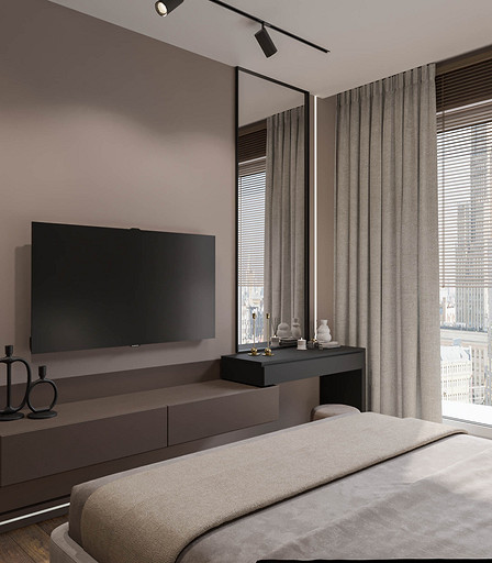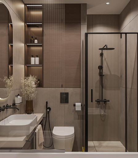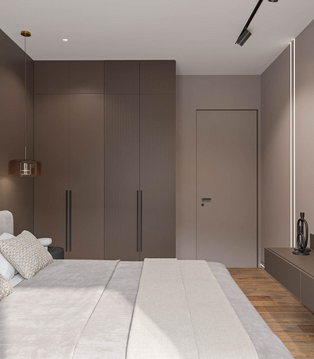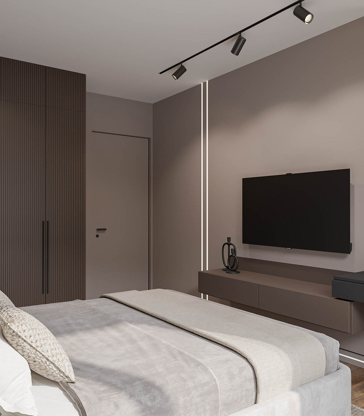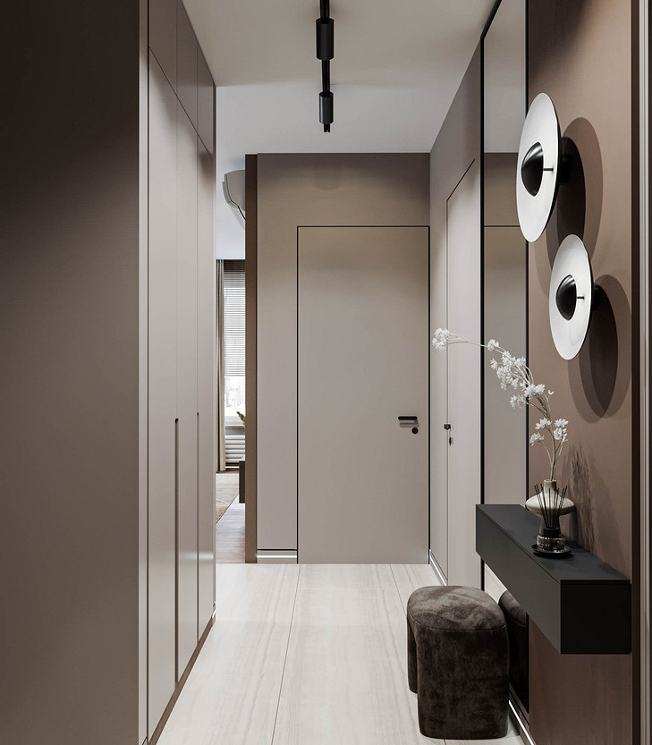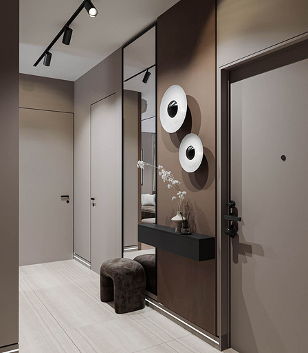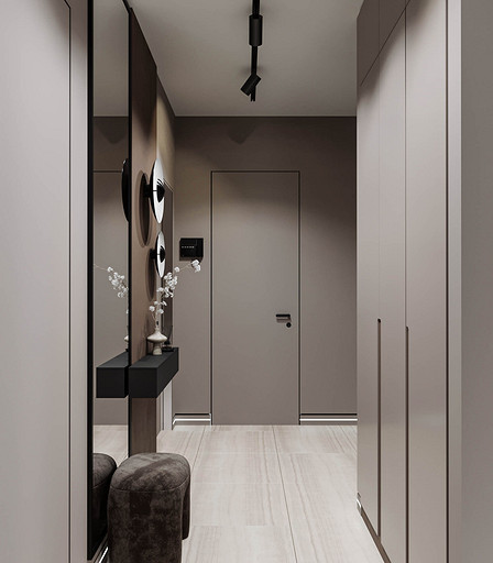 Pantone объявил цветом 2025 года «Мокка-мусс» — оттенок, дарящий ощущение спокойствия и защищенности. Именно эта идея легла в основу нашего проекта. Интерьер, построенный на сочетании кофейных и песочных тонов, обретает по-настоящему обволакивающую атмосферу. Смелым, но оправданным решением стала светлая обивка мебели в дуэте с графичными черными акцентами. Благодаря этому пространство сложилось в идеально сбалансированную композицию, которую уже невозможно представить иной. Динамику вносят стены, где шпонированные панели ритмично чередуются с рельефными гипсовыми, создавая богатую игру света и тени. Пространство квартиры включает кухню-гостиную, прихожую, спальню, гостевую комнату, ванную и компактный санузел. Проект находится на стадии реализации, и мы с нетерпением ждём финальной фотосессии.