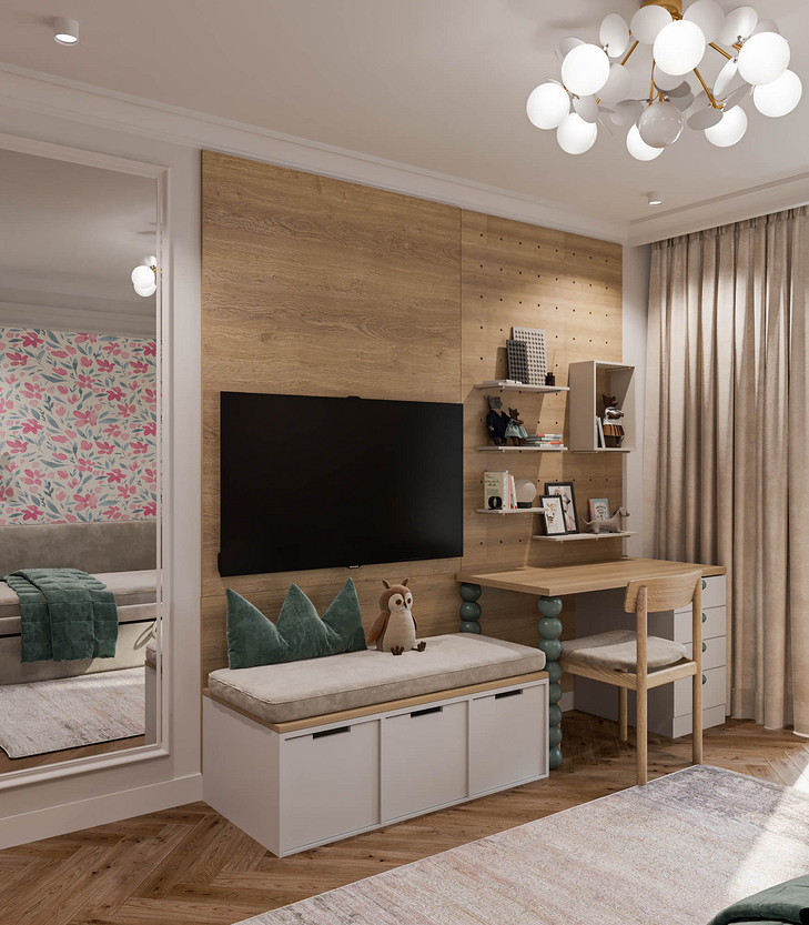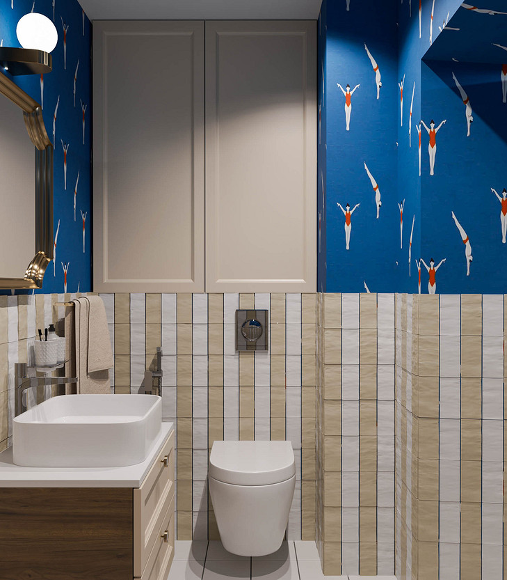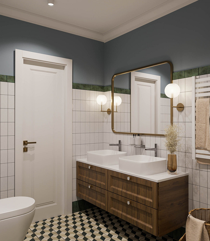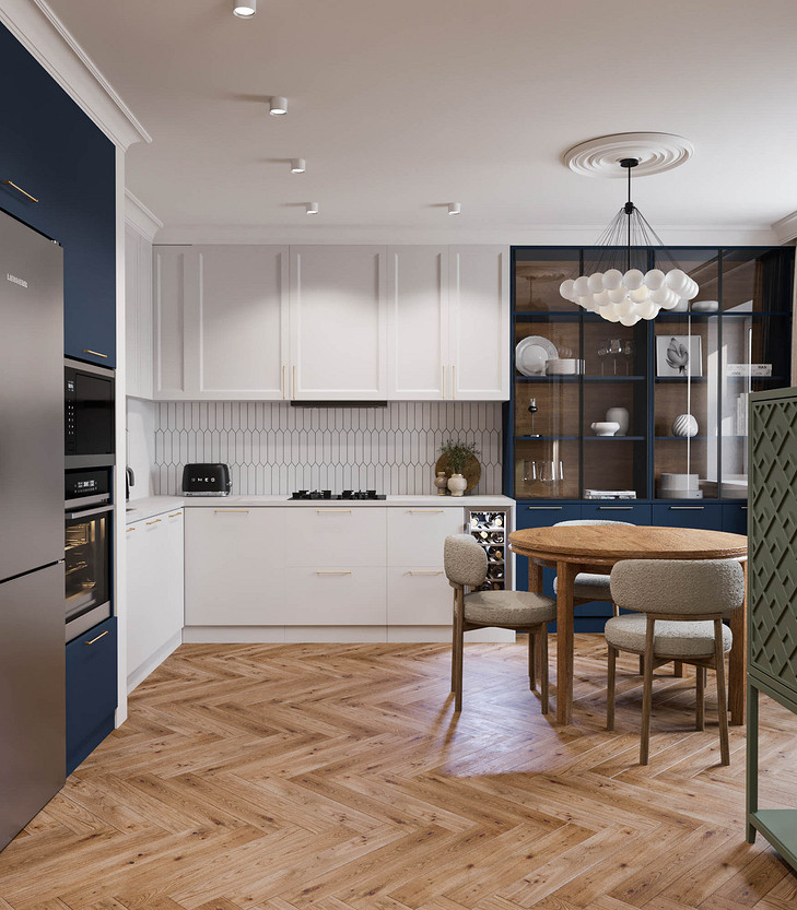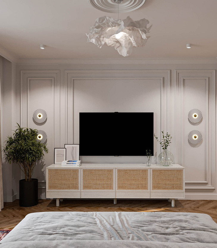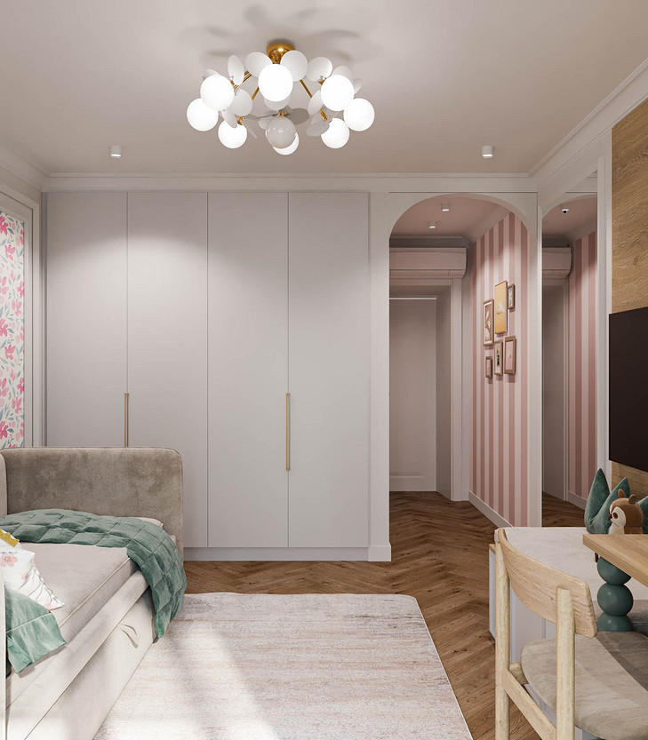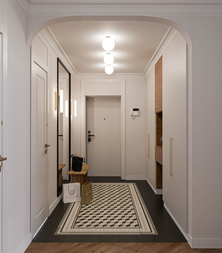 Перед нами стояла сложная, но вдохновляющая задача: воссоздать атмосферу парижского шика в квартире типовой постройки 2000-х годов с низкими потолками (2,5 м), скромными окнами и неудачной перепланировкой. Первым шагом (после согласования) стало устранение простенков под окнами. Это позволило наполнить комнаты максимальным количеством света и установить изящные двери на балкон во всю высоту пола. Далее мы тщательно продумали расстановку мебели в этих больших, но узких помещениях. В гостиной композиционным центром стал камин, расположенный на торцевой стене. На кухне круглый обеденный стол занял место у окна. Особую душу интерьеру придают оригинальные светильники, подобранные с таким чувством, будто их собирали здесь десятилетиями. Отдельной гордостью проекта стала ванная комната: её площадь позволила создать эффектное решение со встроенной ванной, изящно обрамленной аркой. Не забыли мы и о практичности: в комнатах разместились шкафы и комоды, в спальне организована гардеробная, а стиральная машина компактно вписалась в санузел. Проект находится в стадии реализации.