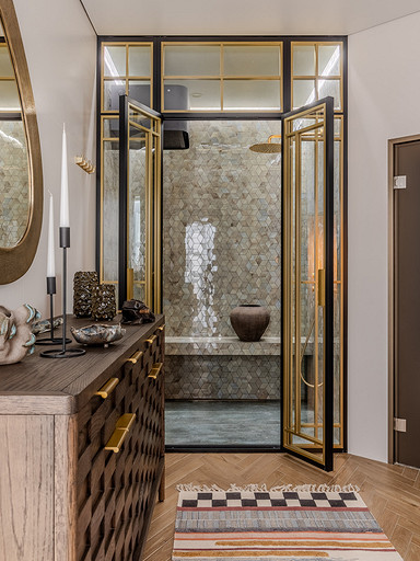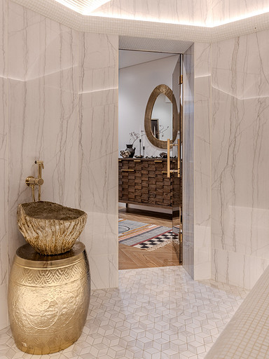 - Стены и пол: керамогранит Italon, мозаика NSmosaic, Art&Natura Mosaico