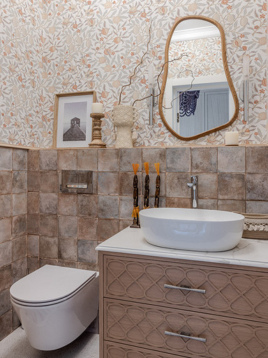- Стены и пол: плитка FAP Ceramiche, Monocolors, ColiseumGres, мозаика Kerama Marazzi