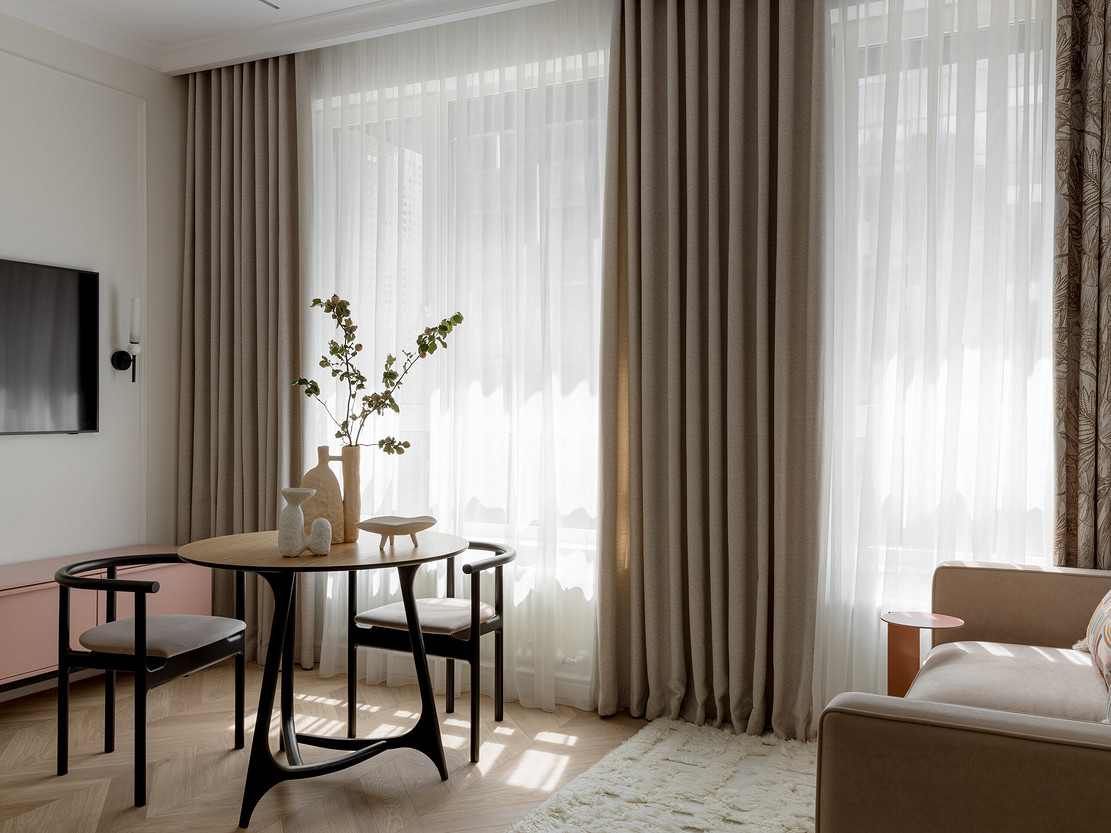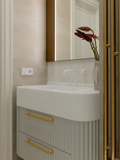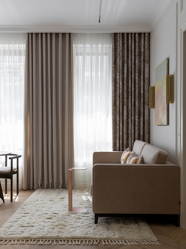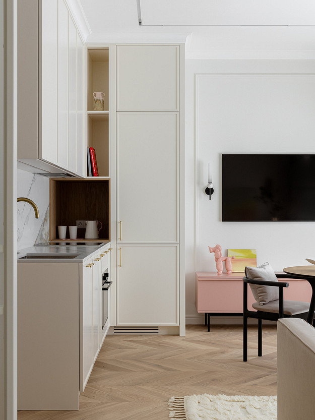 Заказчик попросил дизайнера Лину Князеву не использовать холодные оттенки, лофт и не делать подчеркнуто брутальный интерьер. Автор проекта остановилась на современной классике в светлых тонах с теплыми акцентами. Читать далее...