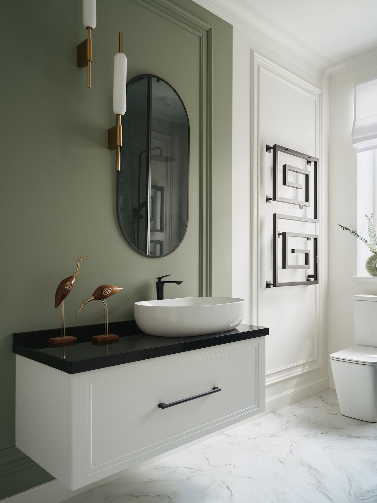 - Пол: кварцвинил Moduleo, керамогранит Aleyra Ceramics