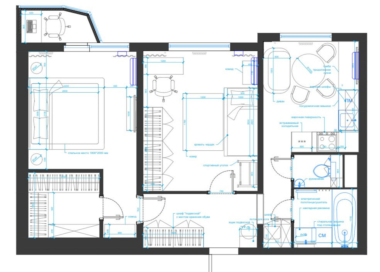Реализованный проект двухкомнатной квартиры площадью 56,1 м2