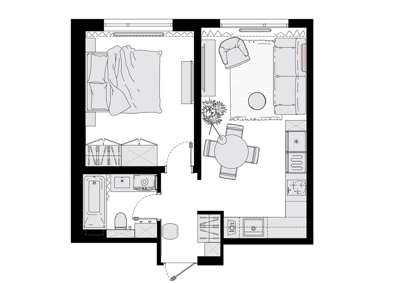 Реализованный проект однокомнатной квартиры площадью 36,7 м2