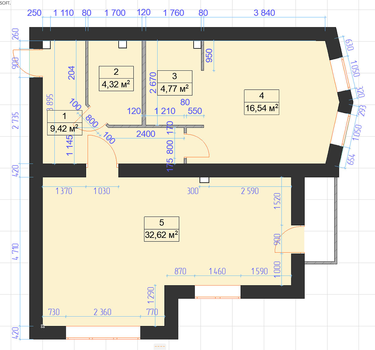 - Светильники, Перегородка(и), Столешница, Стены, Мебель, Потолок