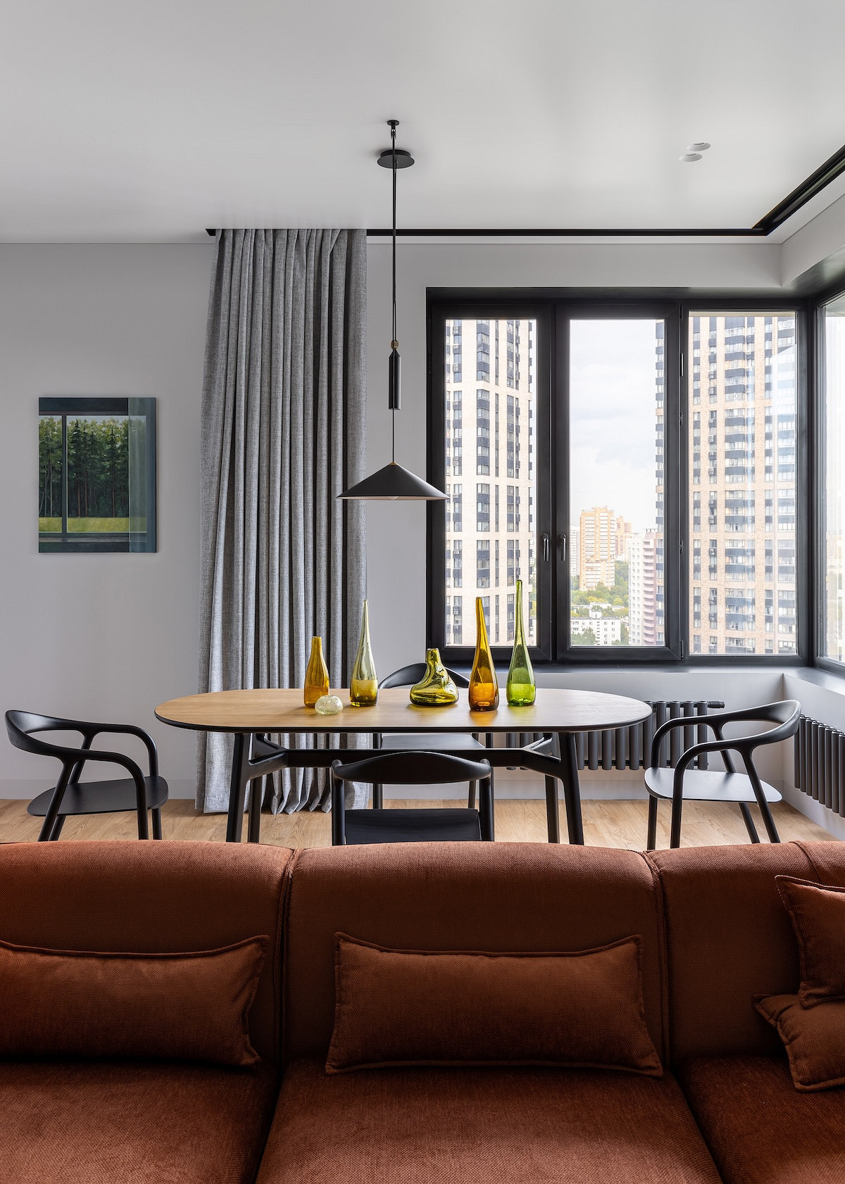 Дизайнер использовала нейтральный фон и яркие акценты для того, чтобы создать эффектный и удобный интерьер для семьи с двумя сыновьями и собакой. Читать далее...