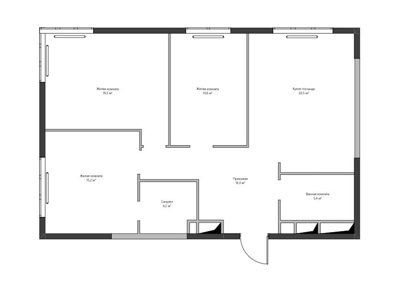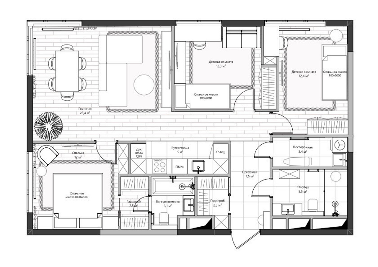 Реализованный проект четырехкомнатной квартиры площадью 94,4 м2