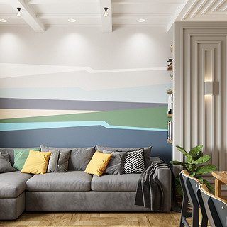 Для этого пространства мы подобрали необычное, креативное панно английского бренда House Of Hackney. Такое решение оказалось не бюджетным и нам пришлось разбить панно на фрагменты для экономии