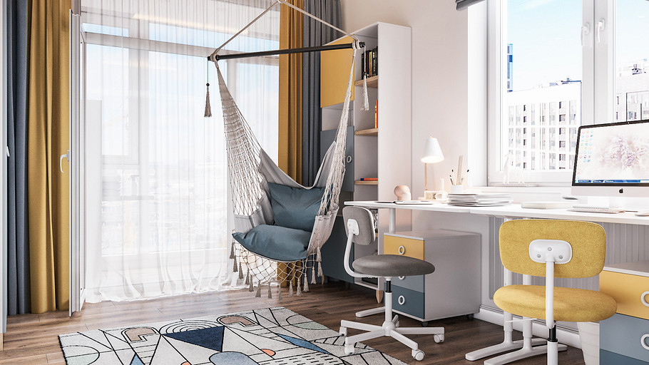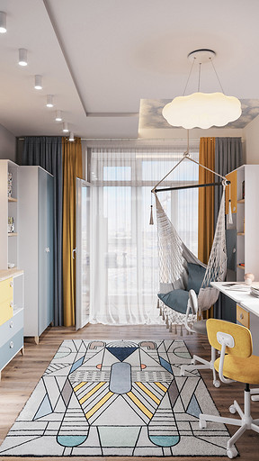 Это пространство имеет два окна. Так приятно осознавать, что архитекторы жилых комплексов стали заботиться о естественном освещении жилых комнат. Благодаря такой архитектуре пространство наполнено светом, что способствует здоровому развитию детей