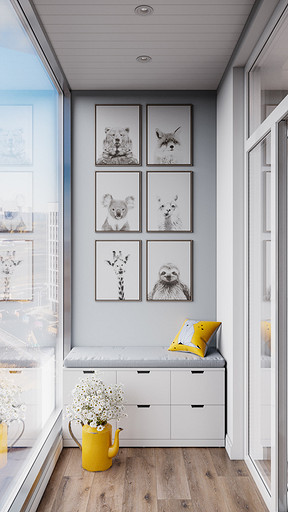 Для увеличения пространства детской комнаты, мы установили стеклянные распашные двери между балконом и комнатой и продумали открытие этих дверей в теплое время года