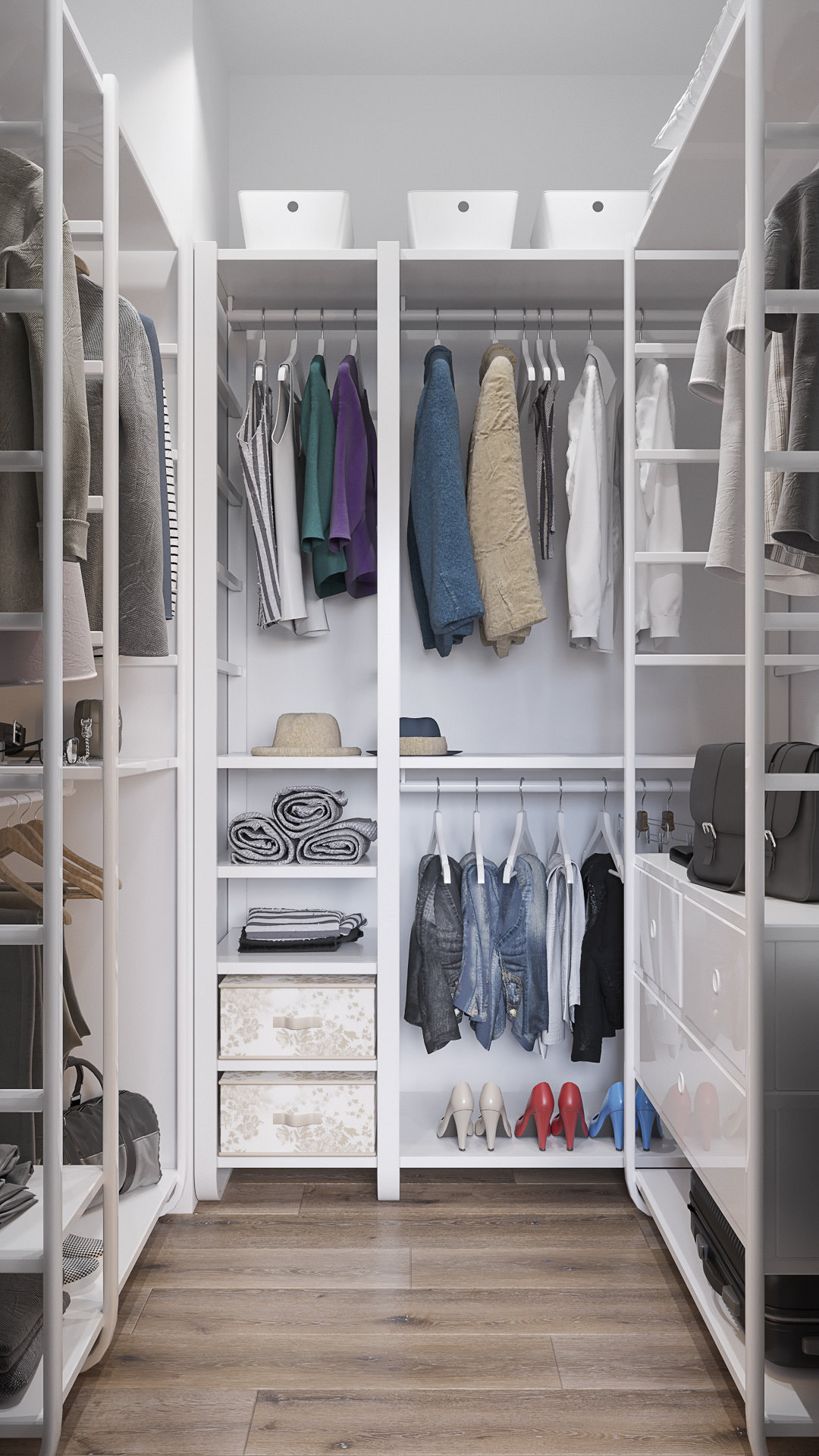 Самым экономным решением для организации гардеробных шкафов является мебель IKEA, но в этом случае габариты гардеробной необходимо продумать и спланировать заранее