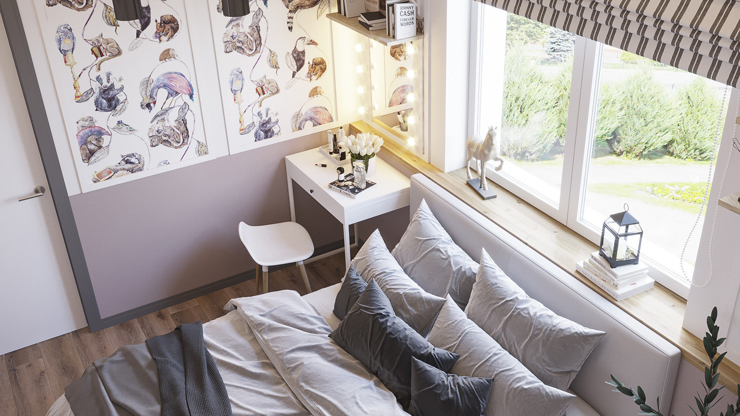 Такое планировочное решение, когда за изголовьем кровати располагается окно, является спорным