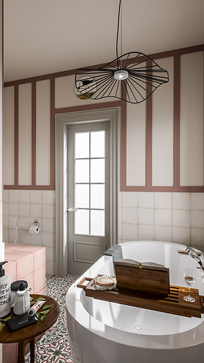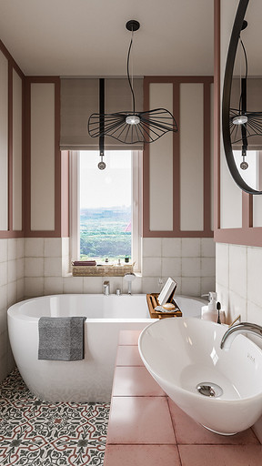 Эта небольшая ванна комната имеет окно с прекрасным видом. Возле окна расположена изящная ванная чаша, лежа в которой можно расслабиться в теплой воде и почитать интересную книгу