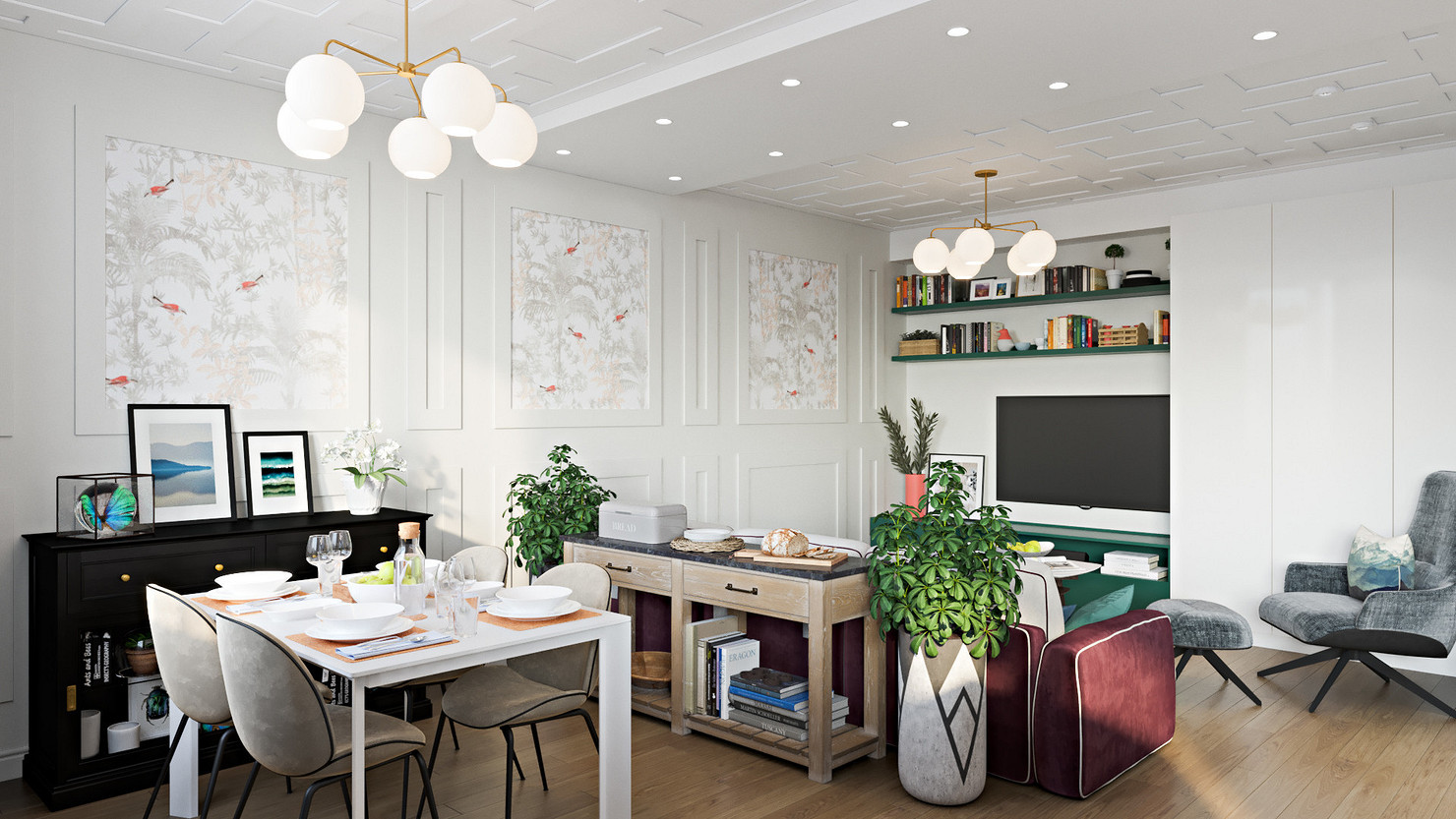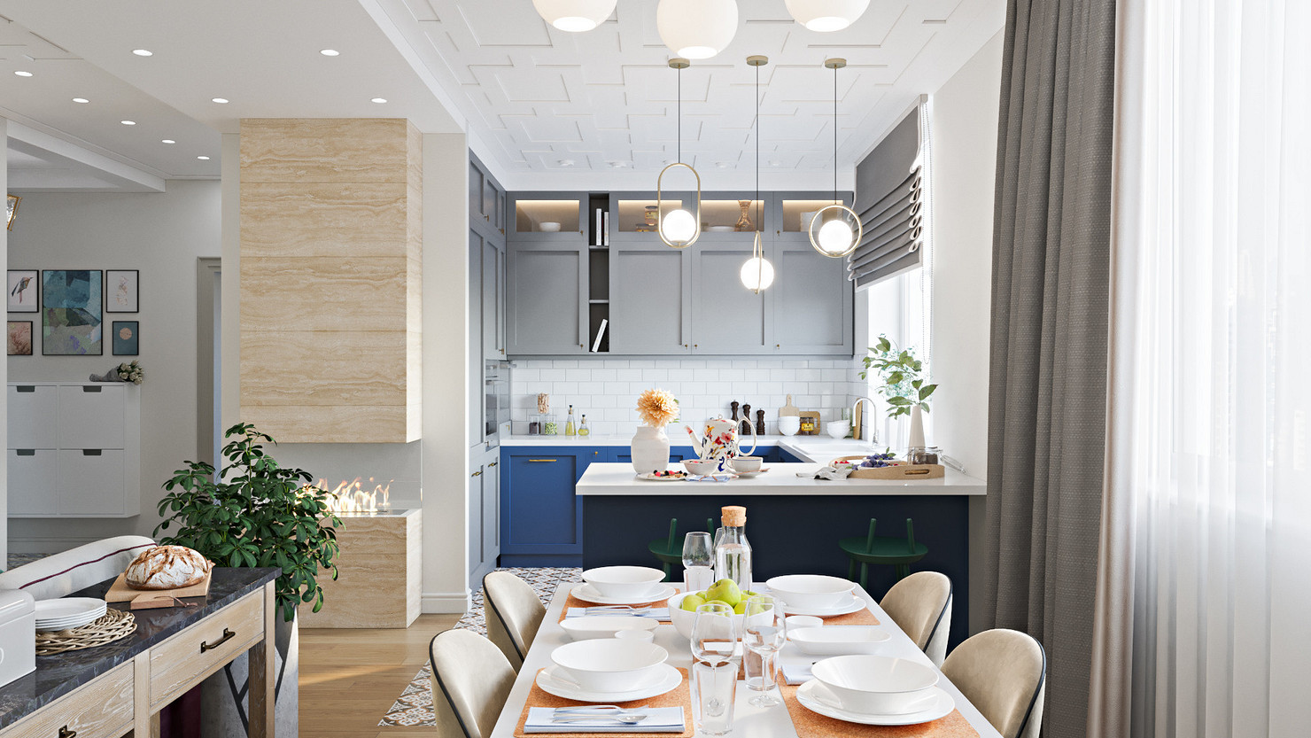 На мой взгляд, пространство наполненное светом и воздухом — увеличивает качество жизни. Для этого я объединила несколько активных в пользование зон: кухню, столовую и гостиную