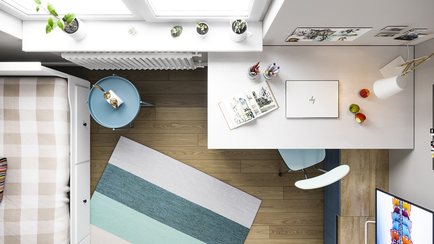 Письменный стол расположен правильным образом так, что дневной свет попадает с левой стороны