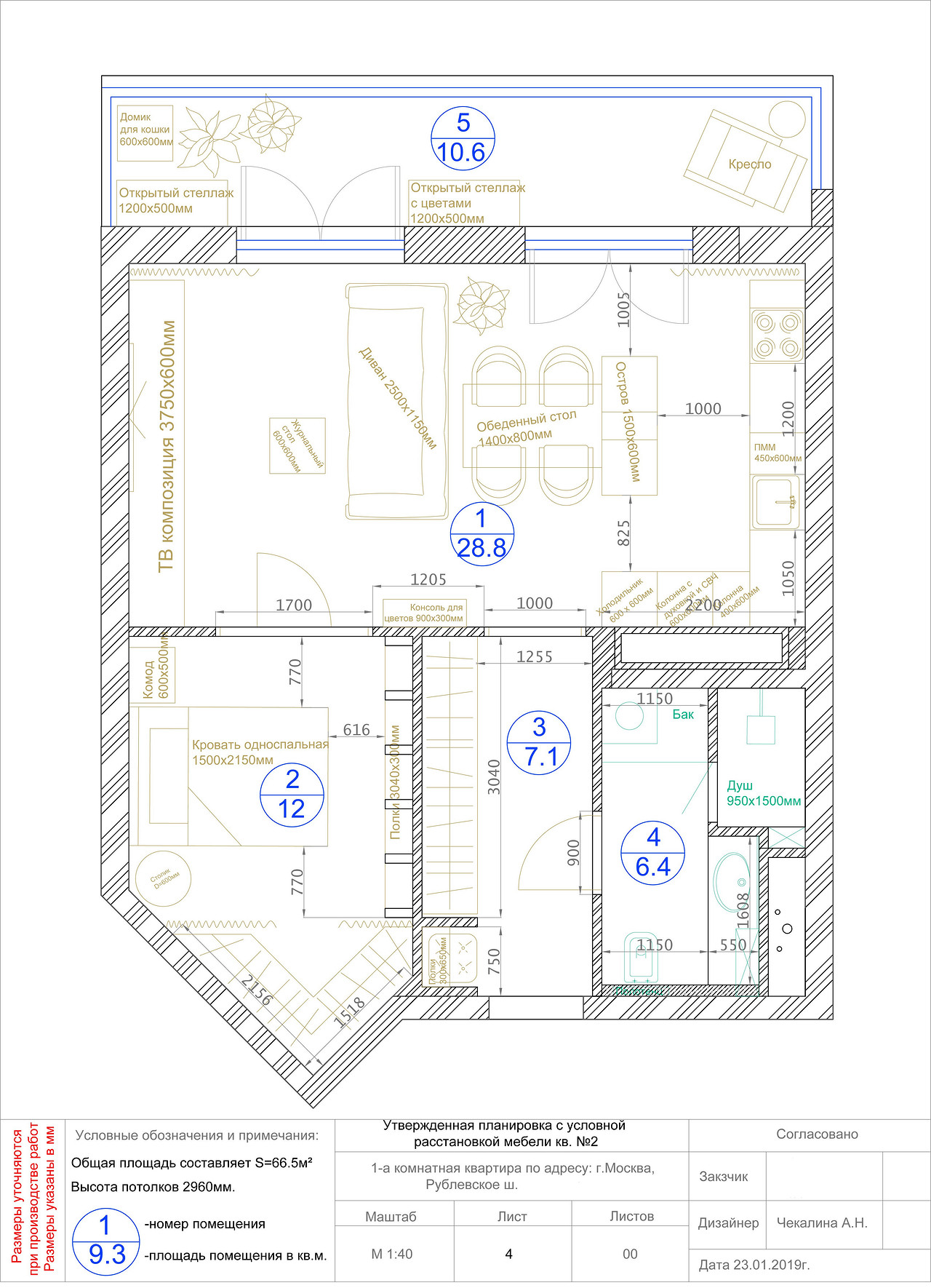 | Общая площадь | 66,5 м2 | 66,5 м2 |